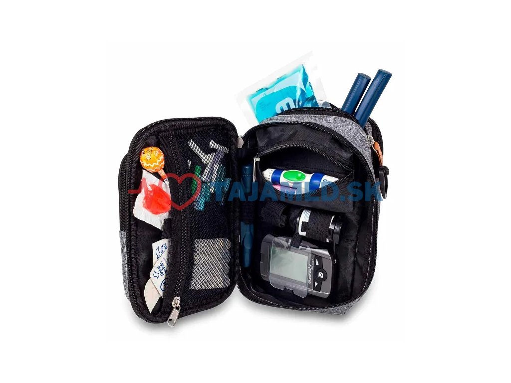 Sieťované vrecká sú ideálnym miestom na uloženie tampónov, ihiel a podobných materiálov, zatiaľ čo vnútorné elastické slučky sú určené špeciálne na uchytenie inzulínových pier, glukomerov a fľaštičiek s testovacími prúžkami.