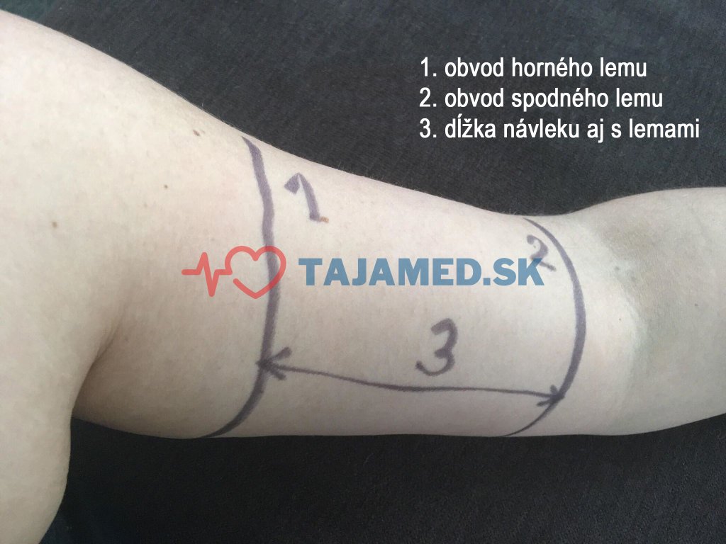 veľkosť | obvod paže v mieste horného lemu | celková dĺžka návleku |